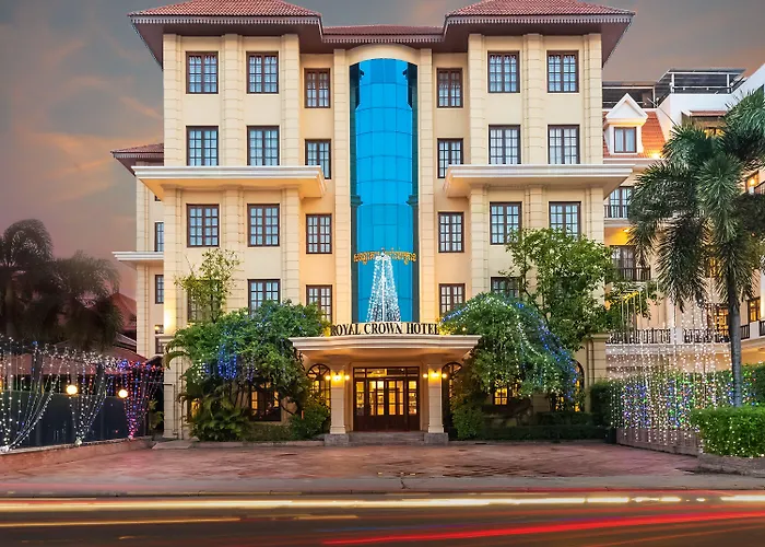 ワット ダムナックから徒歩で6分に位置する完璧な4つ星The Suite By Royal Crown Hotel シェムリアップは屋上テラスがあります。 屋外プール付きのホテルはシェムリアップの中心に位置し、パブストリート数歩の距離です。